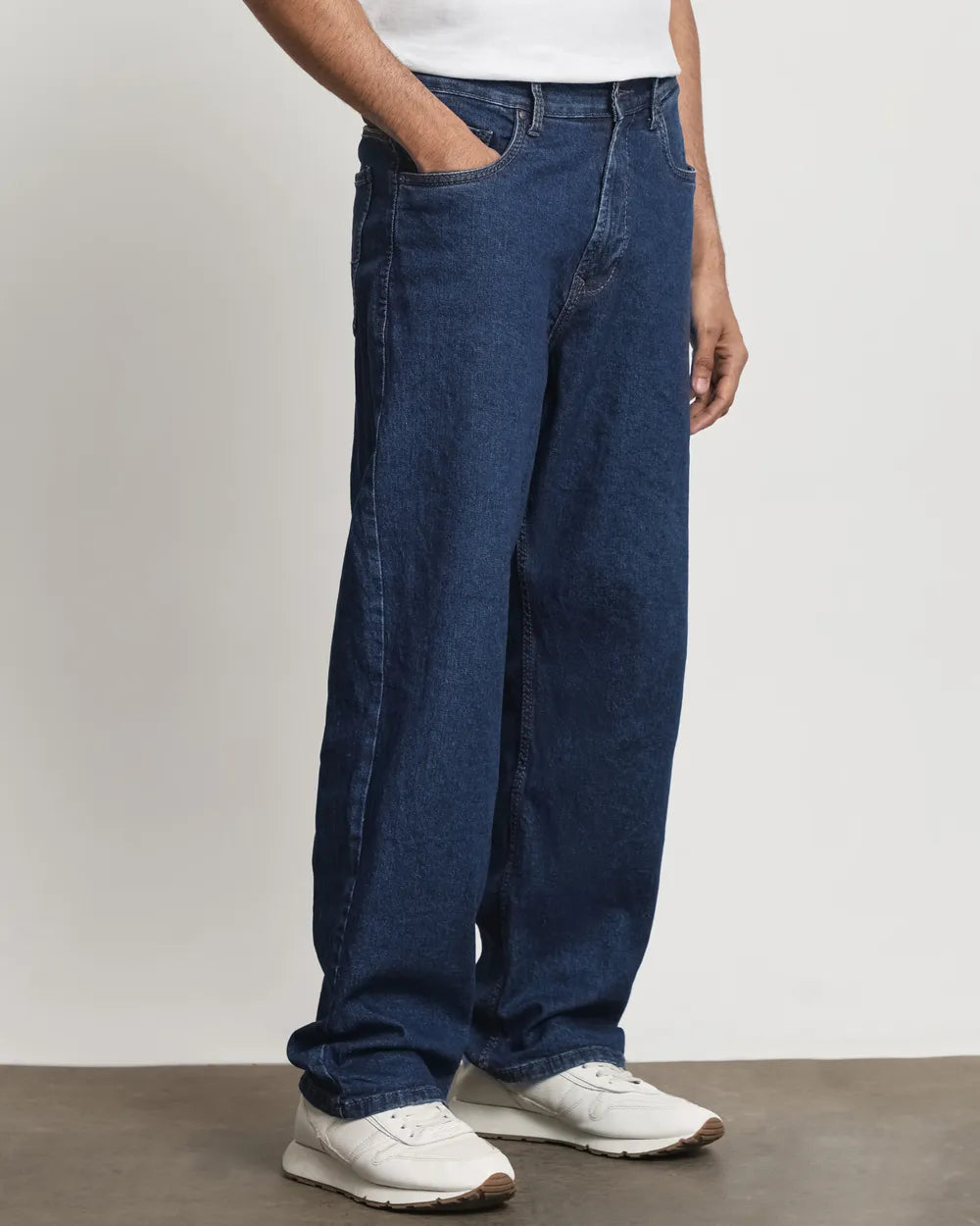 The classic raw indigo color is both versatile and stylish, pairing easily with a wide range of tops, from casual T-shirts and graphic tees to shirts, sweatshirts, and hoodies. Footwear options are equally versatile, including sneakers, loafers, or casual boots, allowing for effortless outfit combinations suitable for different occasions. The rich indigo tone also adds a polished element to the relaxed, oversized style, balancing streetwear appeal with timeless denim aesthetics.