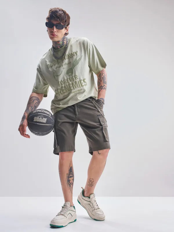 Green Looney Tunes Printed Round Neck Oversized Fit T-Shirt, designed for men who love relaxed fashion with a playful twist. Featuring a vibrant Looney Tunes-inspired print, this tee adds character and energy to your look while keeping you comfortable all day long.