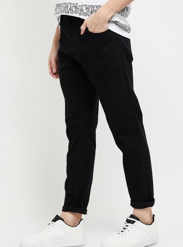 Men Solid Carrot Fit Slim Tapered Denim Jeans Everyday Casual Look