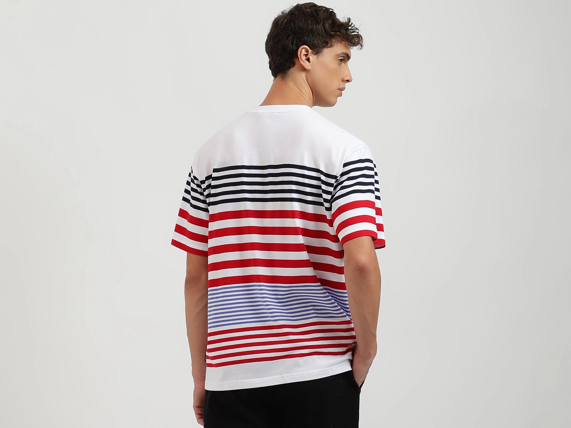The versatility of this striped t-shirt makes it suitable for numerous occasions, from casual outings and daily errands to social gatherings or relaxed office environments. It pairs effortlessly with jeans, chinos, or shorts, and can be styled with sneakers, loafers, or casual shoes for a complete look. Its simple yet fashionable design ensures that it can be worn both as a standalone piece or layered under jackets and hoodies for a more dynamic style.